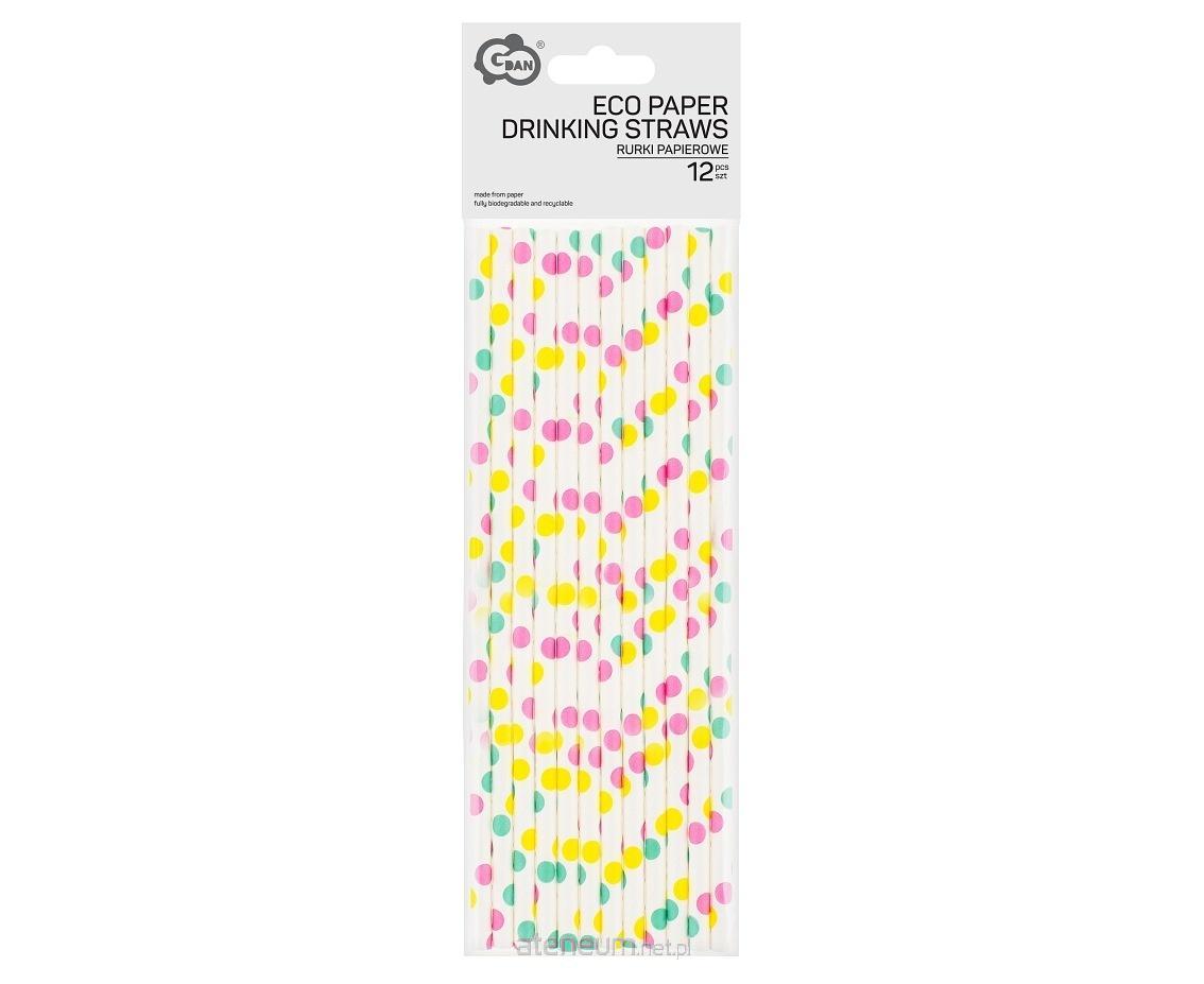 SŁOMKI PAPIEROWE BIAŁE W KOLOROWE GROSZKI