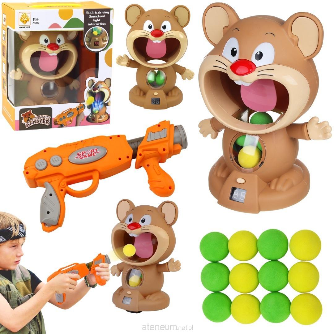 1. Chomik Cel: Uroczy, duży chomik z szeroko otwartą paszczą służy jako cel. W jego wnętrzu znajduje się przezroczysty zbiornik na trafione kulki.