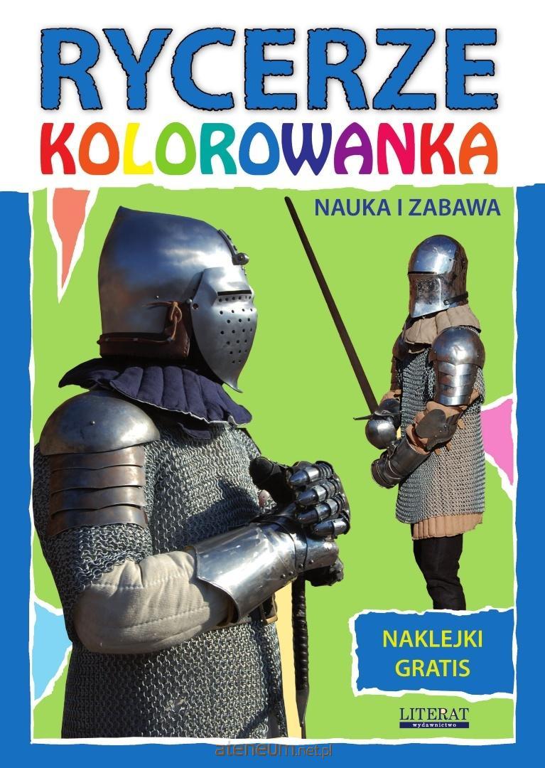 Kolorowanka z naklejkami oraz z ciekawostkami, np. o pasowaniu na rycerza, zbrojach, broni i pojedynkach rycerskich.