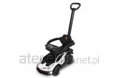 Jeździk został wykonany z dbałością o najwyższą jakość. Szczególną uwagę przyciąga siedzisko wykończone elegancką ekoskórą, które nie tylko prezentuje się pięknie, ale również gwarantuje wygodę nawet podczas dłuższej jazdy. Zastosowanie kół z pianki EVA zapewnia cichą i płynną jazdę zarówno w domu, jak i na zewnątrz.