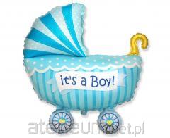 BALON FOLIOWY WÓZEK DLA CHŁOPCA, NIEBIESKI, PAKOWANY