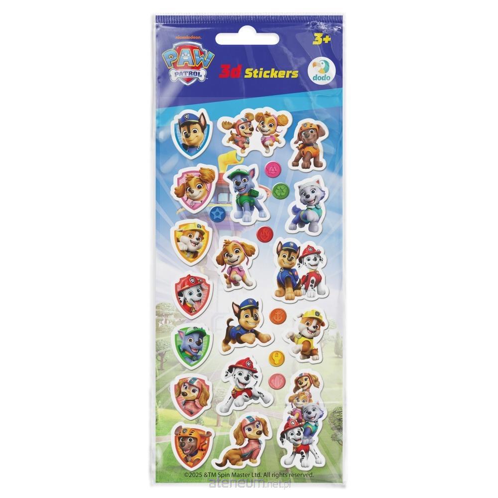 Jeden arkusz z naklejkami 3D różnego rozmiaru z bohaterami "Psiego Patrolu".