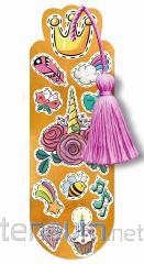 Złocona zakładka wykonana z grubego kartonu ozdobiona kolorowym chwostem.