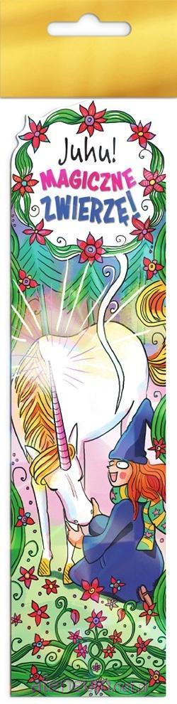 Zakładka do książki wykonana z grubego kartonu, ozdobiona lakierem soczewkowym.
