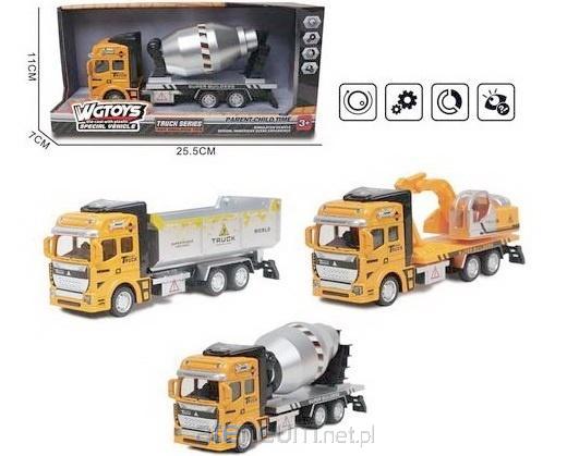 Przedstawiamy metalowo-plastikową ciężarówkę budowlaną z serii VIGTOYS SPECIAL VEHICLE TRUCK SERIES, która zachwyci każdego małego miłośnika pojazdów specjalistycznych. Zabawka jest odpowiednia dla dzieci w wieku 3 lat i starszych. Model charakteryzuje się solidną metalową kabiną i szczegółowo wykonanymi plastikowymi elementami, zapewniającymi trwałość i realistyczny wygląd. Dostępne są trzy ekscytujące warianty do wyboru. Można zdecydować się na betoniarkę z obrotowym bębnem, wywrotkę z ruchomą skrzynią ładunkową lub efektowną lawetę przewożącą koparkę z ruchomym ramieniem. Każda ciężarówka zapewnia wiele godzin kreatywnej zabawy, pobudzając wyobraźnię i wspierając rozwój zdolności motorycznych.