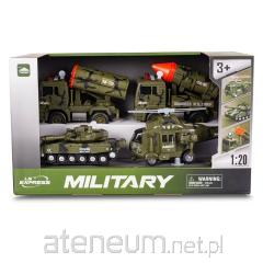 Zestaw zawiera: helikopter, wóz strażacki z drabiną, auto dowódcy, wóz strażacki z armatką