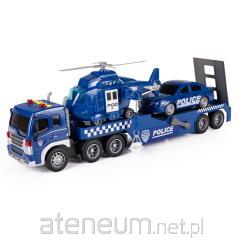 Jeden z największych pojazdów w zestawie - wóz strażacki z drabiną - posiada długą, ruchomą drabinę, którą można wysuwać, podnosić oraz obracać w różnych kierunkach. To idealna maszyna do odgrywania scen gaszenia pożarów na wysokościach. Dodatkowo pojazd został wyposażony w przyciski uruchamiające światła i dźwięki, co na pewno przyciągnie uwagę dziecka. autko osadzone jest na gumowych kołach zapewniając cichą i bezpieczną jazdę. Dzięki napędowi frykcyjnemu wóz strażacki porusza szybko i płynnie - wystarczy odciągnąć go do tyłu i puścić, aby jeździł.