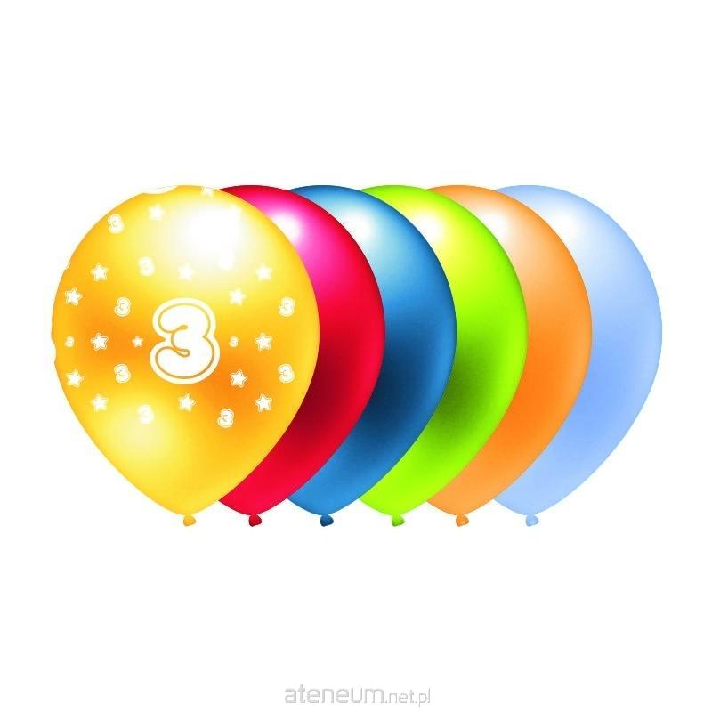motyw: balon metalik nadruk "3" mix kolorów