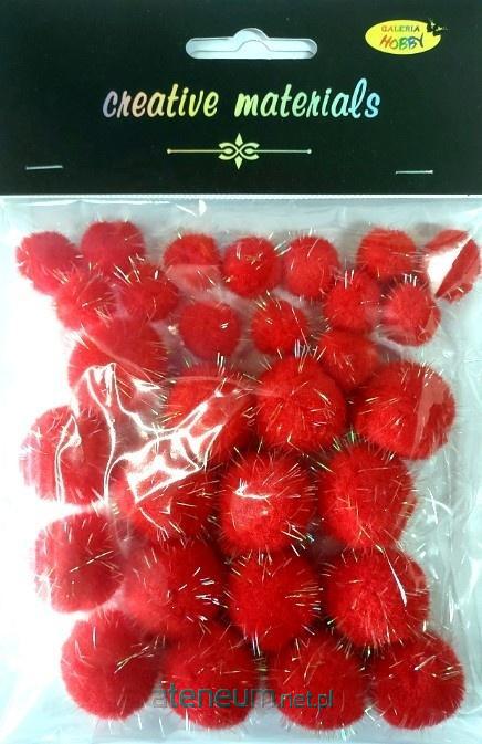 Pompony glitter (15-25mm), 30 szt. czerwone