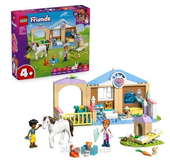 Zachęć dzieci do tworzenia własnych historii dzięki zestawowi klocków LEGO Friends Lecznica dla zwierząt (42696). Ten szczegółowy zestaw LEGO dla 4-latki do zabawy w weterynarza zawiera wszystko, czego potrzebują maluchy, by bawić się w odgrywanie ról i opiekę nad zwierzętami. Zabawka dla dzieci obejmuje stajnię dla koni, gabinet lekarski, legowiska dla zwierząt, karmę, sprzęt weterynaryjny, plac zabaw dla zwierzątek i inne fajne akcesoria.