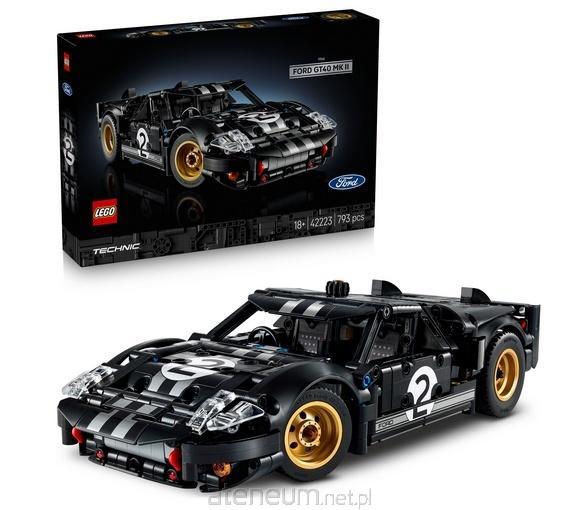 Pędź po zwycięstwo i uczcij ikonę motoryzacji dzięki zestawowi konstrukcyjnemu dla dorosłych LEGO Technic Samochód wyścigowy 1966 Ford GT40 MKII (42223). Dzięki tej realistycznej wersji kultowego samochodu miłośnicy samochodów, fani wyścigów i entuzjaści budowania w wieku od 18 lat mogą poczuć ducha legendarnego wyścigu długodystansowego. Ciesz się odkrywaniem szczegółowych funkcji zestawu. Aby kierować samochodem z klocków LEGO, wystarczy obrócić górne pokrętło. Sprawdź otwierające się drzwi i podziwiaj czarno-srebrną kolorystykę inspirowaną prawdziwym zwycięskim samochodem. Otwórz pokrywę silnika, aby odsłonić silnik V8, a następnie użyj dźwigni wewnątrz, aby otworzyć maskę. Po zbudowaniu modelu auta możesz z dumą wyeksponować swój samochód wyścigowy sprawdzi się jako męska dekoracja do biura lub innego pokoju. Spełnij swoje marzenie o budowaniu superszybkich pojazdów dzięki gamie kolekcjonerskich samochodów LEGO Technic dla dorosłych. Poznaj inny wymiar budowania dzięki aplikacji LEGO Builder, w której można powiększać i obracać model, przeglądać instrukcje w 3D, a także zapisywać i śledzić swoje postępy. Zestaw składa się z 793 elementów.