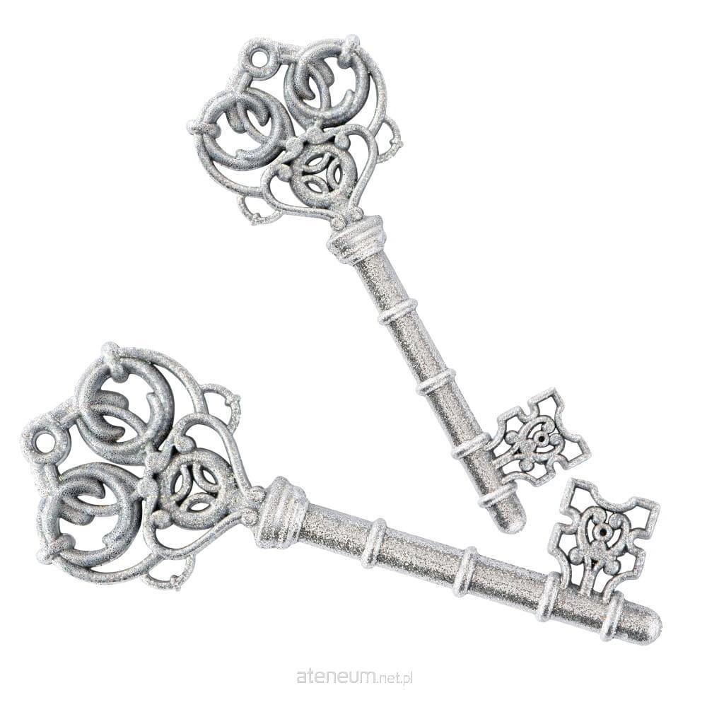 Ozdoby świąteczne w kształcie kluczy to ręcznie wykonany zestaw dwóch sztuk, wyróżniający się unikalnym, ażurowym designem pokrytym brokatem. Każda ozdoba została przygotowana z dbałością o najmniejszy detal. Klucze wykonane są z plastiku i mają wymiary 150 55 15 mm. Dzięki eleganckiej, srebrnej kolorystyce świetnie sprawdzą się jako dekoracja choinki lub innych elementów świątecznych. Ozdoby są wyposażone w nitkę ułatwiającą zawieszenie.
