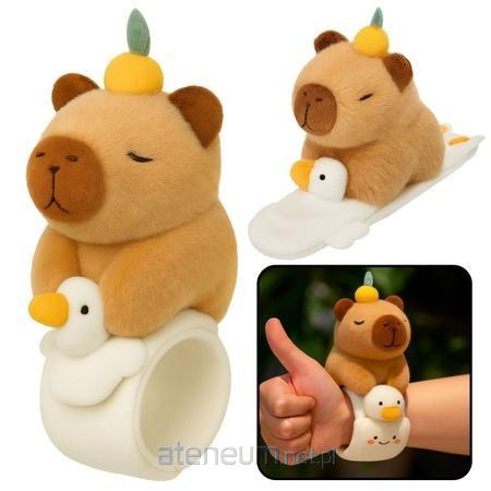 Pluszowa opaska na rękę z uroczą kapibarą to niezwykły gadżet, który łączy funkcję ozdoby i zabawki w jednym produkcie. Kapibara wykonana z miękkiego, delikatnego pluszu została umieszczona na kolorowej opasce w motywie gęsi, która po lekkim uderzeniu sama owija się wokół nadgarstka. Mechanizm typu snap band sprawia, że zakładanie opaski jest szybkie, wygodne i efektowne.