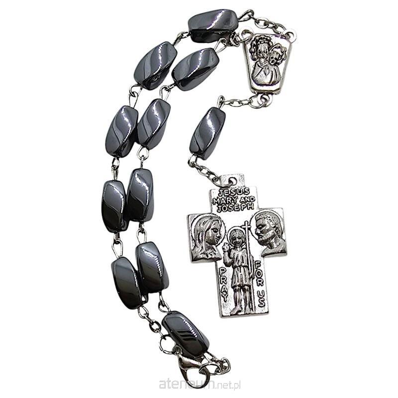 Dziesiątka Różańca z Hematytu - Zapinana, z Krzyżem Św. Krzysztofa i Świętej Rodziny, 20 cm
