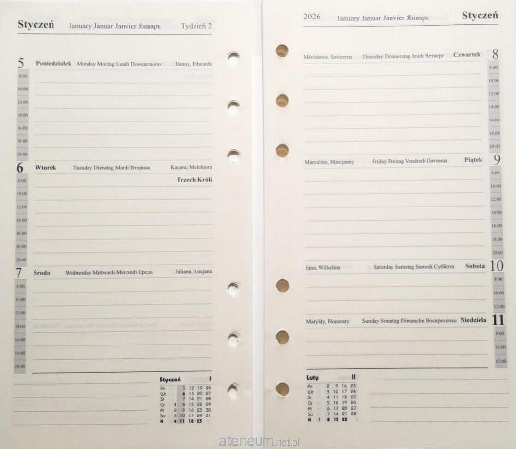 Na końcu kalendarza dodatkowe strony z planem miesięcznym na kolejny rok 2026.
