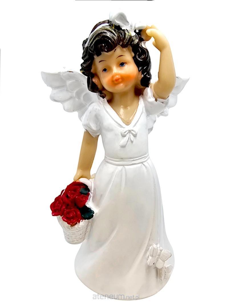 Aniołek przedstawiony jest w uroczej pozie, a w rączkach czule trzyma kosz pełen róż, symbolizujących miłość, wdzięczność i obfitość piękna. Ubrany jest w piękną, białą sukieneczkę, która podkreśla jego czystość i niewinność. Detale figurki są pięknie wykonane, z zachowaniem naturalnego koloru skóry i brązowych włosów, przewiązanych elegancką kokardą, co nadaje mu uroczego i ciepłego wyglądu. Całość uzupełniają piękne, misternie rzeźbione skrzydełka, podkreślające jego anielski charakter.
