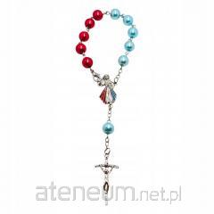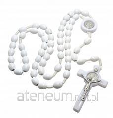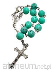 Materiał: Kamienne turkusowe kuleczki, metalowy krzyż, metalowe ozdobne kuleczki.