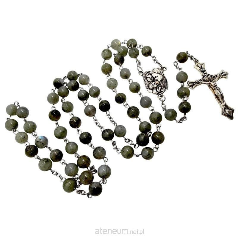 Podaruj wyjątkowy prezent pełen duchowego piękna i elegancji. Ten 56-centymetrowy różaniec wykonany jest z naturalnego kamienia Labradoryt w odcieniach zieleni i szarości, a jego gładkie koraliki o wielkości 8 mm zachwycają subtelną grą barw. Centralnym elementem jest piękny łącznik przedstawiający Świętą Rodzinę, dodający mu głębokiego znaczenia. Całość wieńczy efektowny krzyż o wymiarach 50x31 mm. Różaniec zapakowany jest w stylowe pudełeczko oraz elegancką torbę prezentową, co czyni go idealnym upominkiem na każdą okazję.