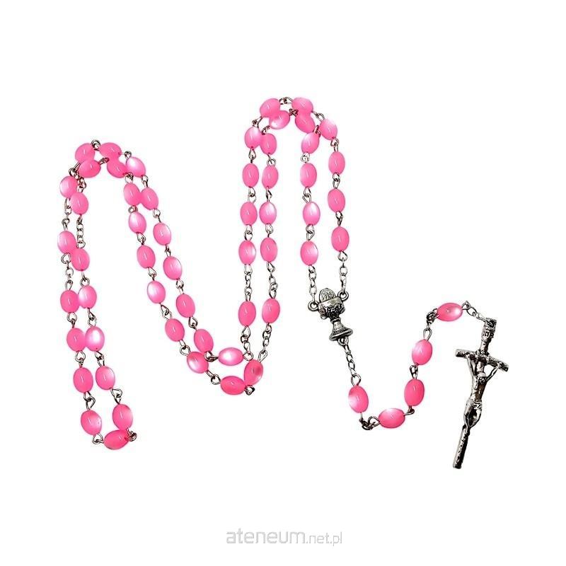 Różowy Różaniec Komunijny z Krzyżem Papieskim