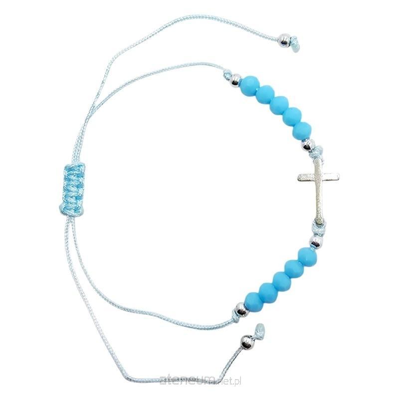 Urocza bransoletka na rękę, będąca jednocześnie praktyczną dziesiątką różańca. Wykonana z trwałego, regulowanego sznurka, dzięki czemu idealnie dopasowuje się do każdego nadgarstka. Dziesiątkę tworzy dziesięć barwnych koralików, które przyciągają wzrok swoją subtelnością. Centralnym elementem bransoletki jest metalowy krzyżyk o wymiarach 13x18 mm. Dodatkowym, subtelnym akcentem są małe, srebrne kuleczki, które pięknie połyskują i dodają bransoletce elegancji. Ta wyjątkowa bransoletka nie tylko ułatwia odmawianie dziesiątki różańca, ale również stanowi stylowy i radosny dodatek do każdej stylizacji.
