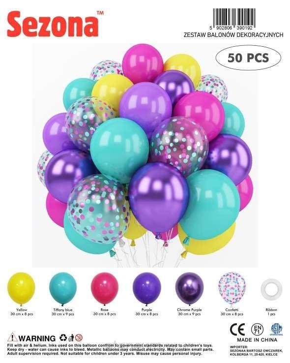 Zestaw balonów lateksowych - kolorowy metaliczny z konfetti, 50 szt.