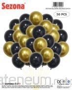 Zestaw balonów lateksowych - czarno-pomarańczowy z konfetti, 50 szt.