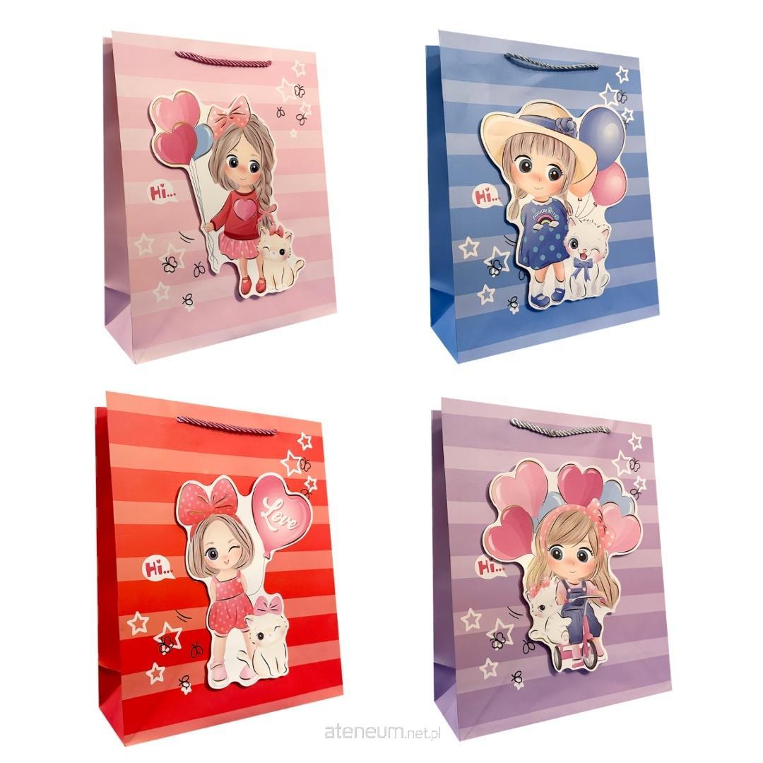 Torebka papierowa dziecięca, dla dziewczynki wykonana z grubszego papieru o gramaturze 210 g, co zapewnia jej większą trwałość i odporność na obciążenie. Wyposażona w grubszy, kolorowy sznurek, który zapewnia wygodny uchwyt i estetyczne wykończenie. To praktyczne opakowanie, które podkreśla wartość wręczanego prezentu.