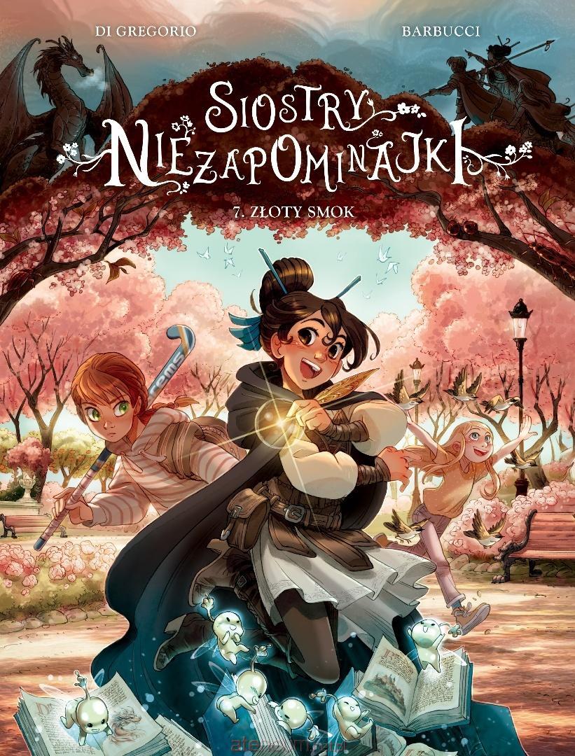 Najnowszy tom mądrej, zaskakującej i wzruszającej opowieści o trzech siostrach Niezapominajkach. Dziewczynki są bardzo zajęte. Sara gra w turnieju sportowym, Kasjopeja pisze opowiadanie na konkurs, a Lucilla pomaga w schronisku dla zwierząt. I właśnie wtedy orientują się, że z miejskiego parku zniknęła rzeźba smoka, którą uznawały za totem swojego Klubu Trzech Sióstr! Kto ją ukradł? Rozpoczynają śledztwo, które doprowadzi je do ciekawych wniosków na temat tak ważnych spraw jak ambicja, osiąganie celu i przyjaźń. Może też uda im się uratować dzielnicową księgarnię, a wraz z nią prawdziwą magię słów?