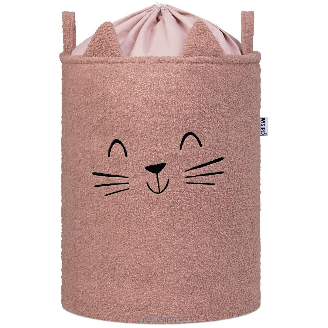 SIPO, KOSZ NA ZABAWKI XL PREMIUM BOUCLE, ZAMYKANY NA ŚCIĄGACZ, RÓŻOWY KOT