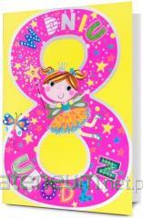 Kartka jest bogato i różnorodnie zdobiona (zależnie od wzoru: metaliczna folia, lakier perłowy,