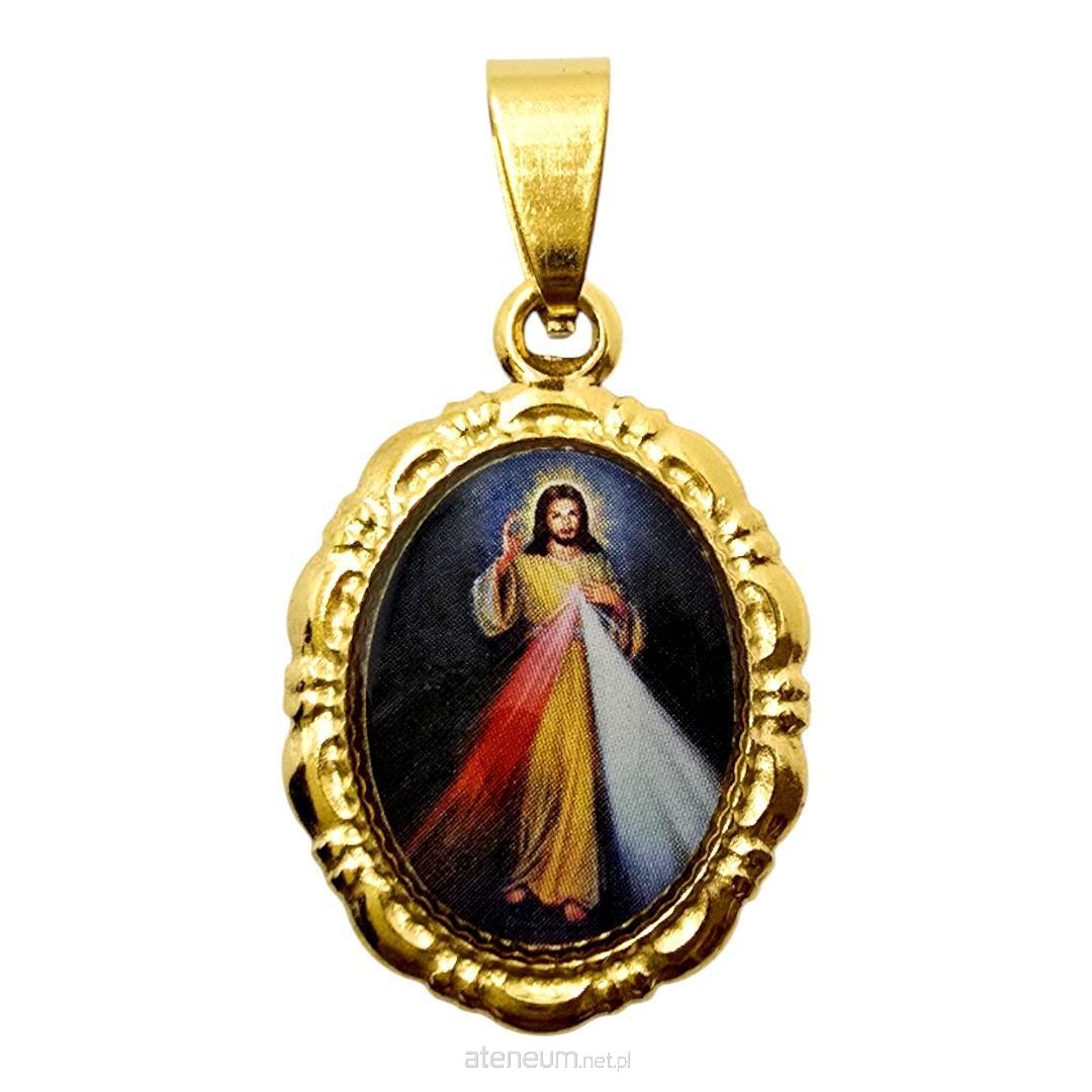 Złoty Medalik Jezusa Miłosiernego (23 mm) - Kolorowy Wizerunek
