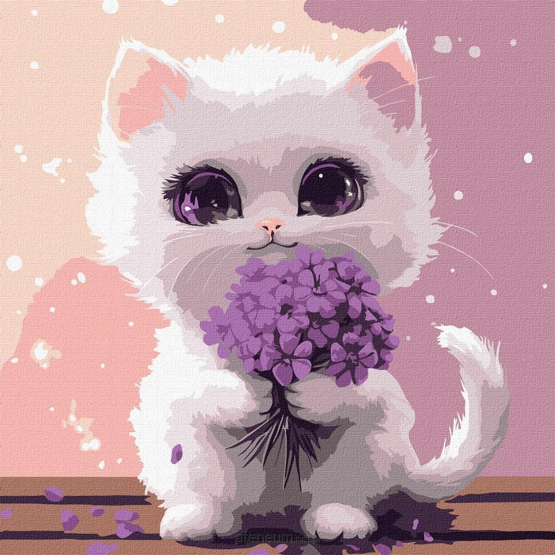 Malowanie po numerach -Kot z bukietem Kids 30x30