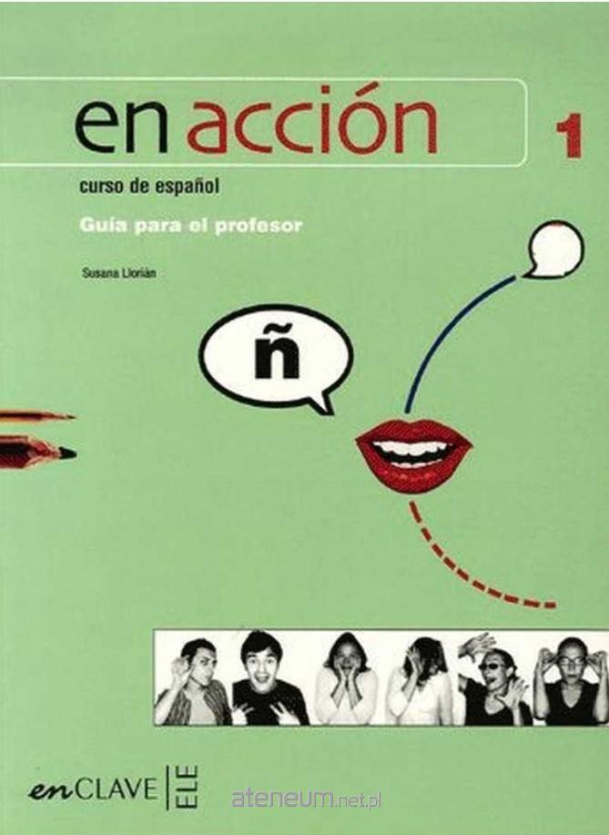 W przewodniku metodycznym "En acción 1" zawarte są sugestie, związane z użytkowaniem podręcznika, dodatkowe ćwiczenia, które uzupełniają treści zawarte w podręczniku, możliwe do wykorzystania na rozpoczęcie i zakończenie zajęć, a także pozwalające na swobodne przejścia do nowych zagadnień. Przewodnik proponuje także zadania, które można realizować poza przestrzenią klasy, jak również sugestie, dotyczące przygotowania do egzaminu DELE intermedio. Zawiera transkrypcję nagrań wykorzystywanych w podręczniku.