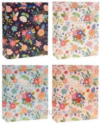 Torebka prezentowa uniwersalna M Kwiaty brokat mix