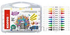 Flamaster dwustronny: cienka końcówka do precyzyjnych linii, szeroka końcówka pędzelkowa do powierzchniowego nanoszenia tuszu