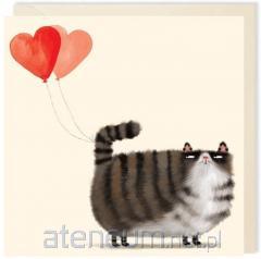 Karnet kwadrat 069 Walentynki Kot z balonami