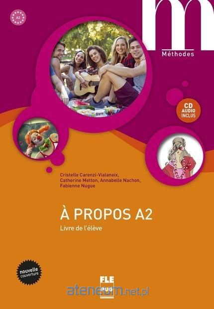Kurs francuskiego A propos A2 jest przeznaczony dla starszej młodzieży i dorosłych, którzy osiągnęli poziom A1 CEFR i mają na celu nabycie umiejętności odpowiadających poziomowi A2. Pomaga przygotować się do egzaminu DELF A2.