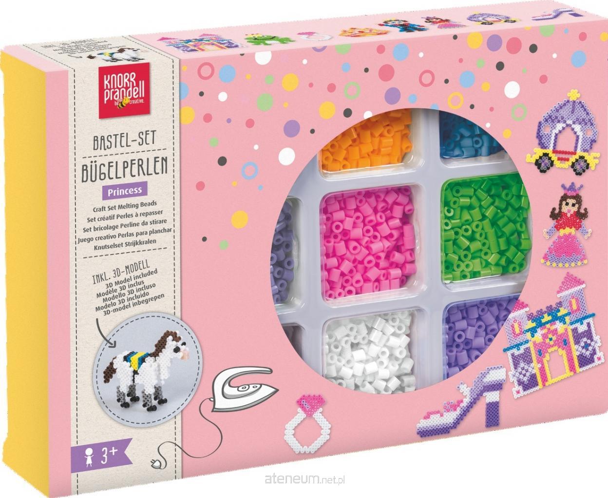 Zestaw zawiera 4000 plastikowych koralików do zaprasowywania, podkładki, papier do prasowania, pęsetę, szablony z gotowymi motywami, podpórki oraz instrukcję. Rozmiar opakowania: 27 x 18,2 x 5 cm.