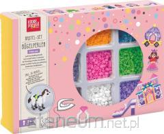 Zestaw zawiera koraliki oraz sznureczki do samodzielnego wykonania naszyjników i bransoletek. Wszystko zapakowane jest w ładne, plastikowe pudełeczko z możliwością ponownego zamknięcia.