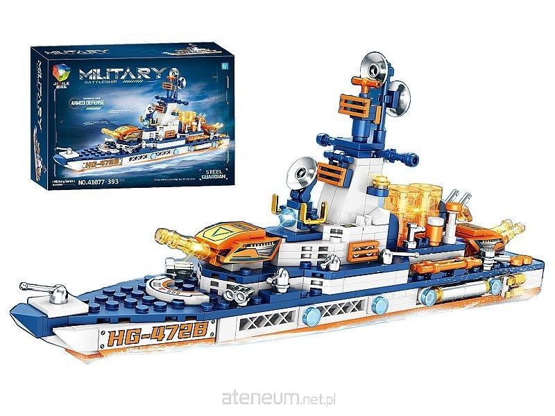 zestaw 393 klocków - model okrętu wojennego, z podstawką, 28,7x11,9x6,2cm; 36x25x8cm, Box