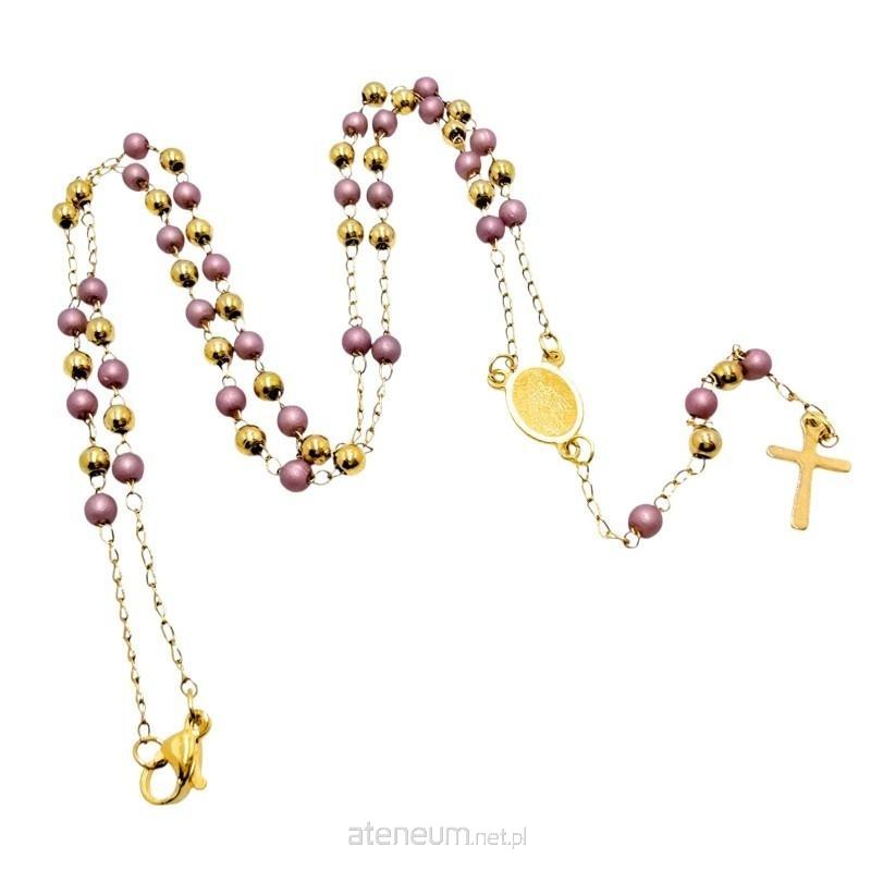 Różaniec Zapinany Złoto-Różowy - Delikatny Łańcuszek na Szyję (40 cm, Stal Nierdzewna)