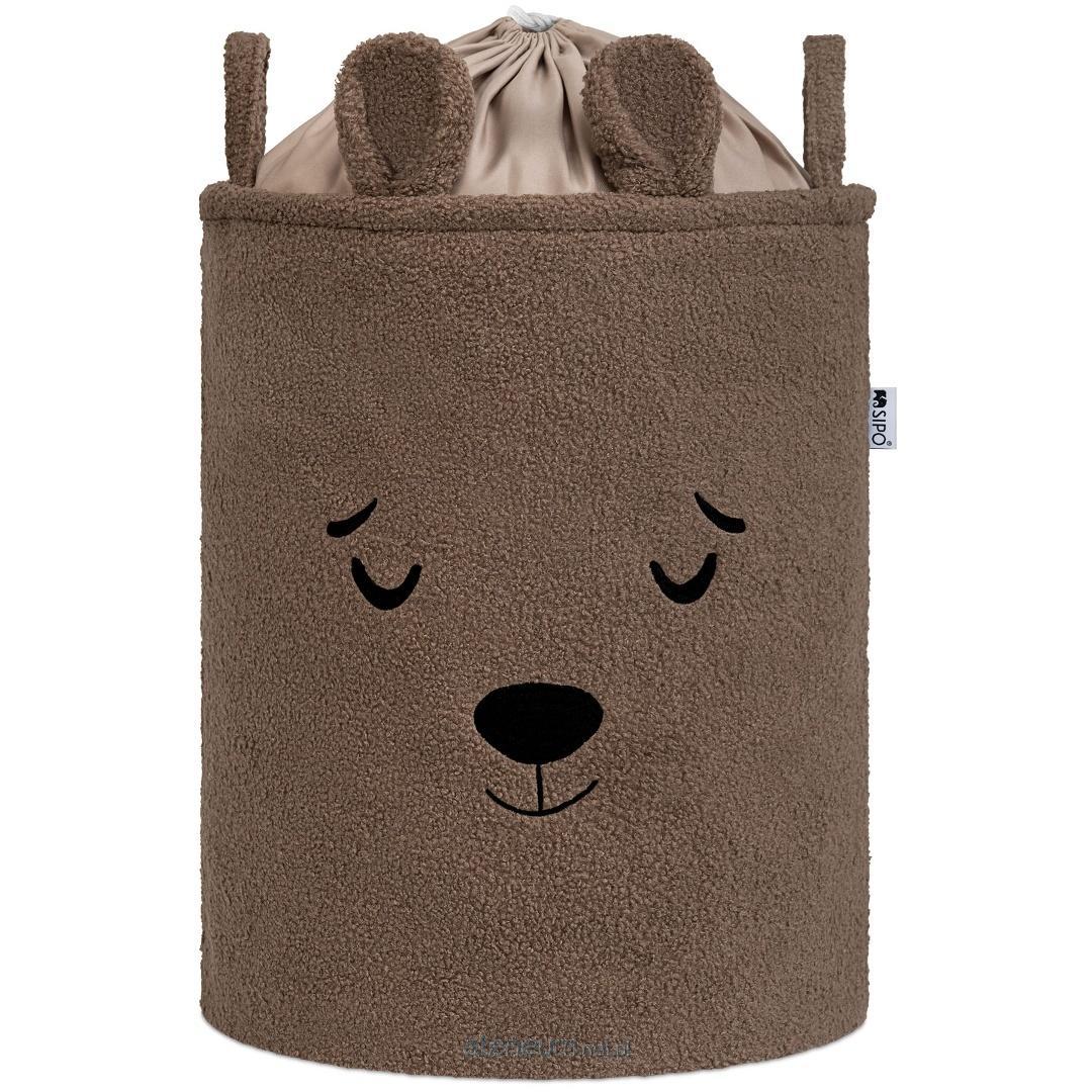 SIPO, KOSZ NA ZABAWKI XL PREMIUM BOUCLE, ZAMYKANY NA ŚCIĄGACZ, BRĄZOWY MIŚ