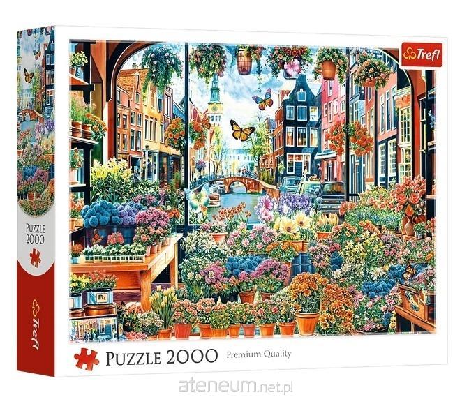 Puzzle Kwiaciarnia w Amserdamie składające się z 2000 elementów przedstawiają barwną, pełną kwiatów scenerię urokliwego amsterdamskiego kanału, otoczonego zabytkowymi kamienicami, mostkiem oraz bogato ukwieconymi straganami i balkonami, nad którymi unoszą się motyle.