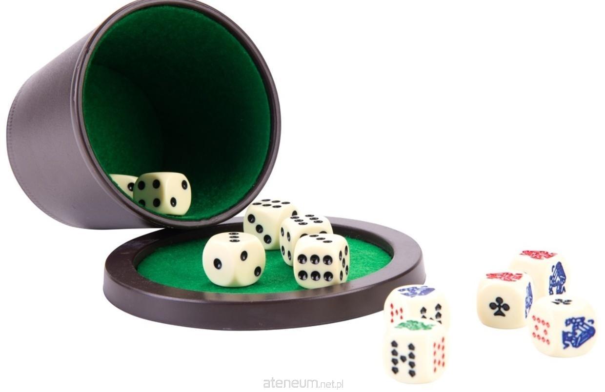 Kości pokerowe i oczkowe pozwalają na rozgrywkę w wiele różnych gier, a dołączony kubek i tacka zwiększają wygodę oraz porządkują zabawę. Wysoka jakość wykonania gwarantuje trwałość i komfort gry przez długi czas. Cechy produktu: