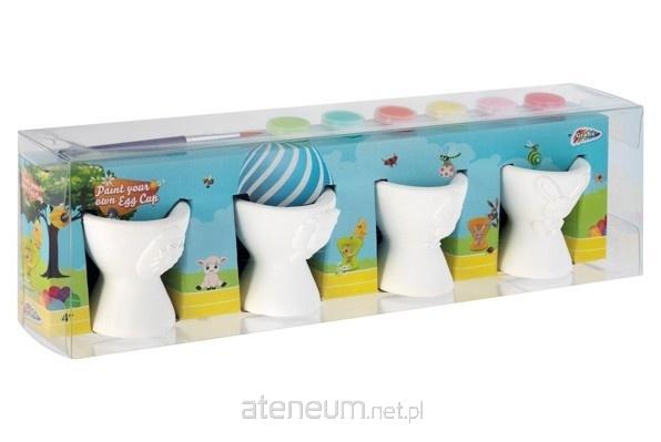 Wielkanocne kieliszki/podstawki na jajka do malowania (PYO), 4 szt., 6 farb, pędzelek