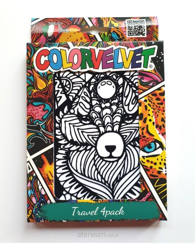 Zestaw 4 małych kolorowanek welwetowych wraz z flamastrami - idealny towarzysz podróży.<br class="def">