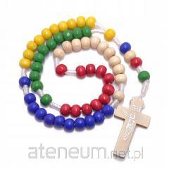 Koraliki różańca wykonane są z przeźroczystego plastiku, w którego środek ma subtelny, jasnoróżowy kolor. Takie połączenie nadaje im wyjątkowej elegancji i atrakcyjnego efektu wizualnego, idealnego na prezent dla dziewcząt. Koraliki mają około 4 mm wielkości.