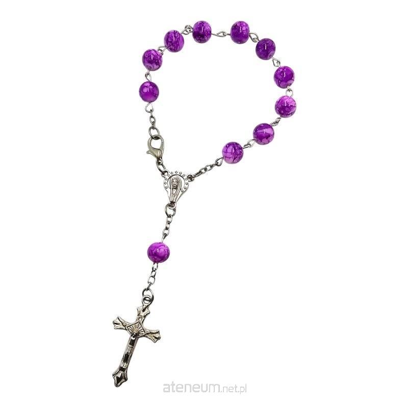 Elegancka dziesiątka różańca wykonana z pięknych, fioletowych szklanych koralików o średnicy 8 mm, imitujących naturalny kamień. Ta stylowa dziesiątka jest zapinana, co umożliwia jej wygodne noszenie lub zawieszenie, na przykład w samochodzie. Łącznikiem różańca jest delikatna postać Maryi, a całość zwieńczona jest ozdobnym,metalowym krzyżem o wymiarach 32x17 mm. To subtelne i pełne duchowego znaczenia akcesorium, idealne do codziennej modlitwy i jako wyraz wiary.