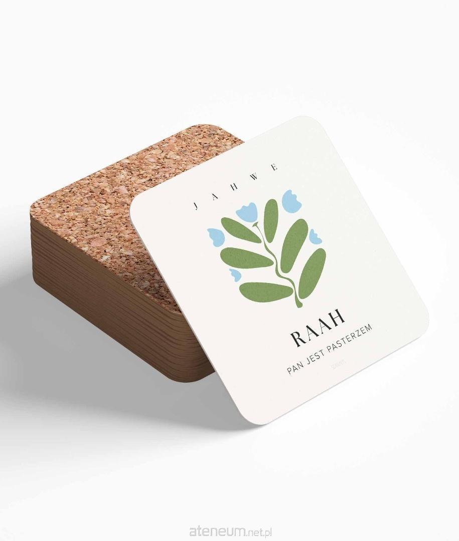 Imię Raah, oznaczające "Pan jest Pasterzem", to głęboka deklaracja Bożej opieki, prowadzenia i troski. Podkładkę zdobi prosta, minimalistyczna ilustracja roślinna w odcieniach zieleni i błękitu.