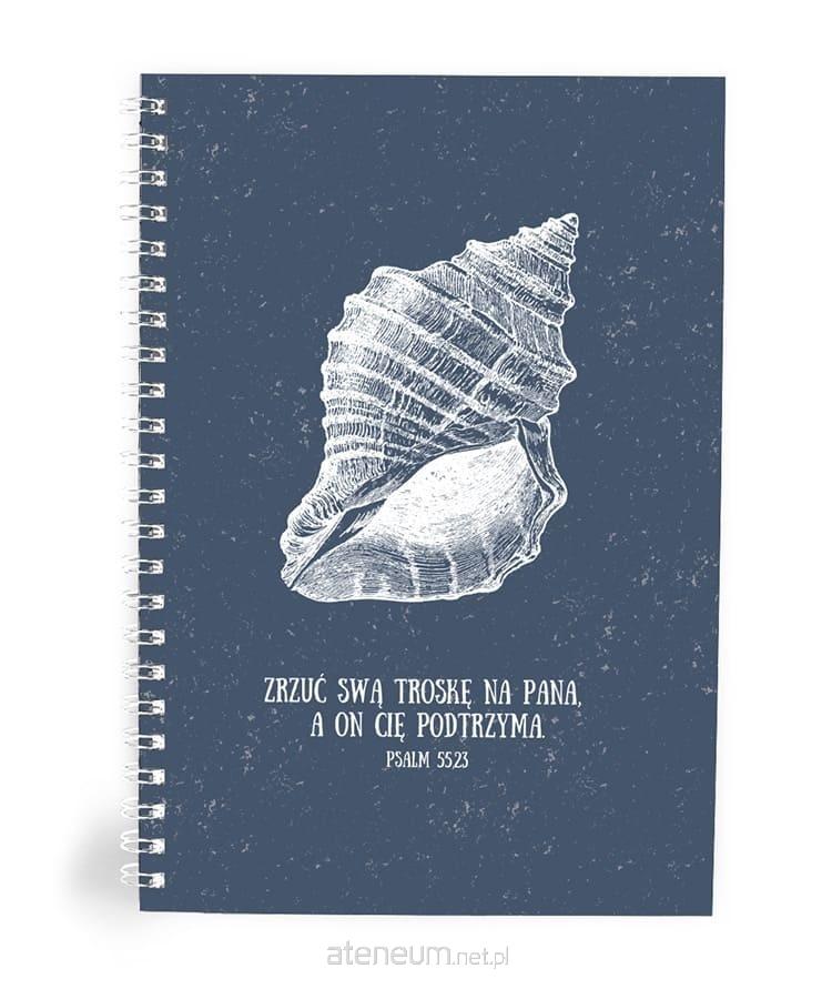 Ilustracja muszli na granatowym tle przywołuje spokój, lekkość i symbol odpoczynku. Psalm 55,23 przypomina, by oddawać Bogu trudne sprawy, bo On podtrzymuje.